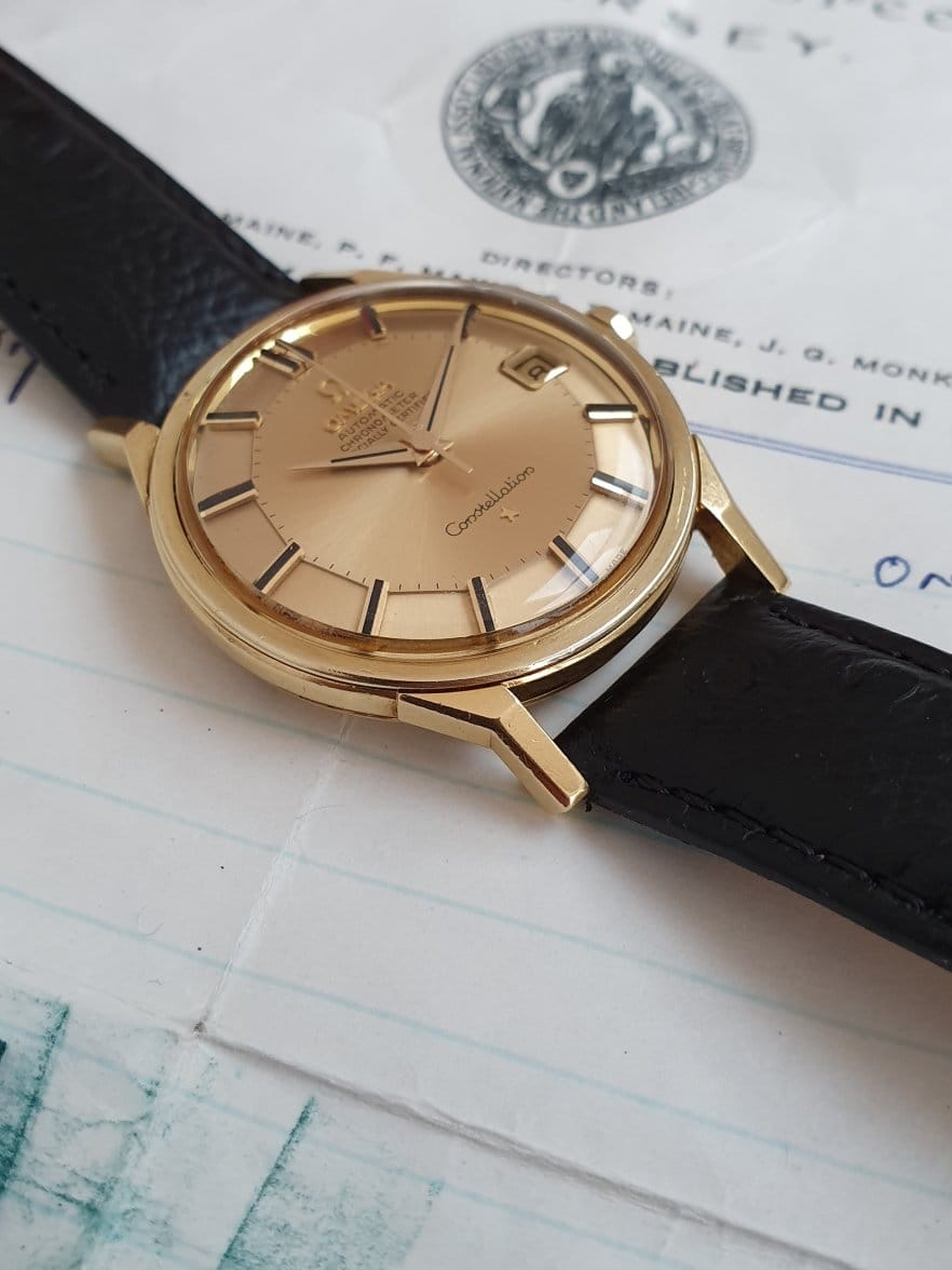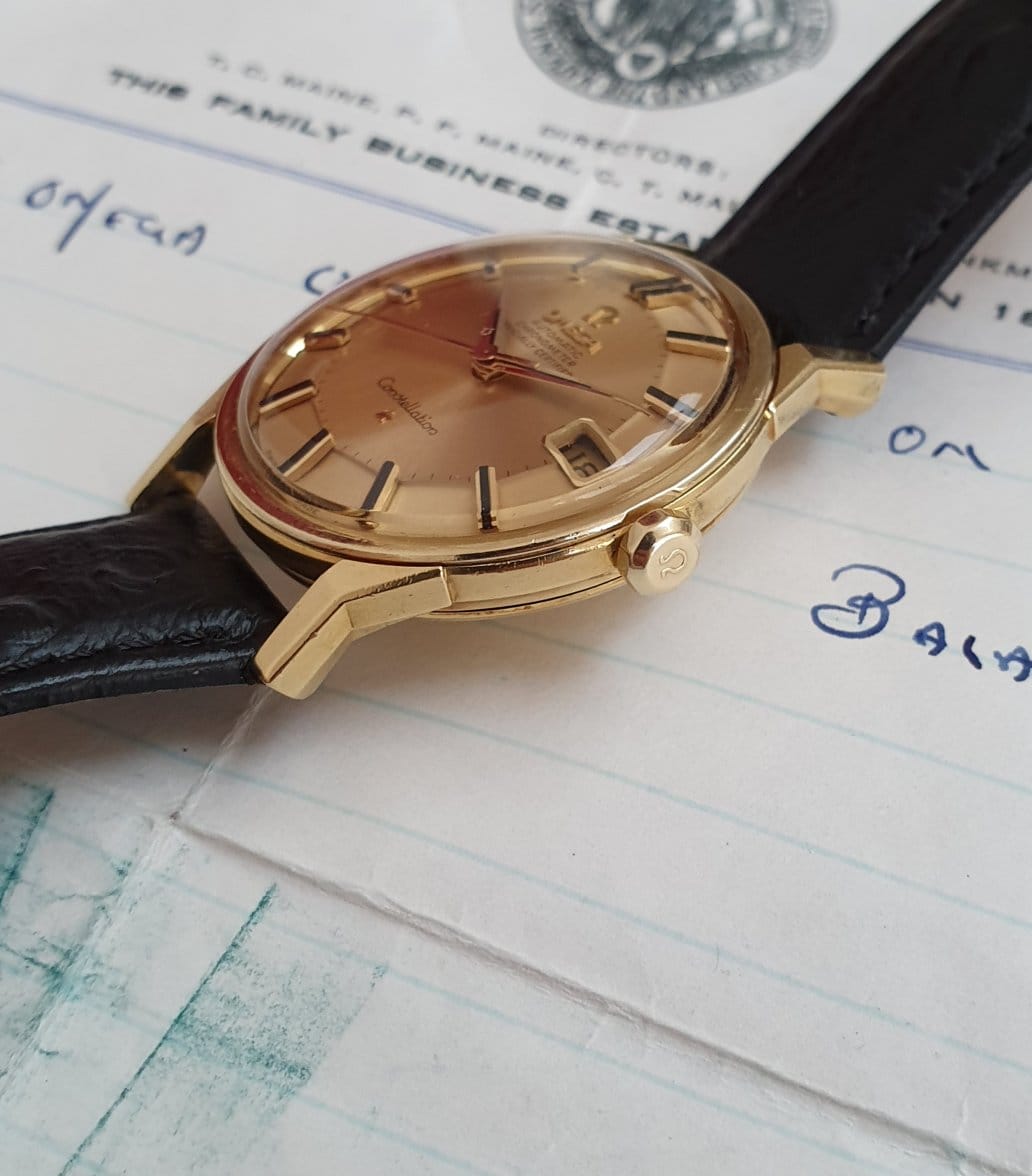Gold is a very soft metal, vastly softer than steel and over the years most vintage Omega's have been polished, often by people of limited skill and ability. Machine polishing of vintage gold Omegas has turned countless beautiful Constellations and Seamasters into amorphous, misshape blobs of metal, as edges and corners are extremely easy lose.
