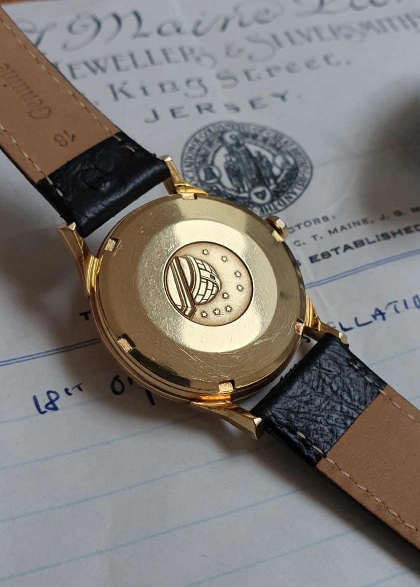 A similar 168.005 in solid gold that has been quite harshly polished and redialed, showing a loss of case edges and lines as well as stars on the case-back medallion